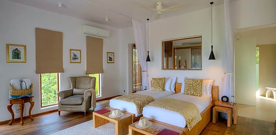 Featuring a private plunge pool and terrace, this luxury air-conditioned villa comes with sea views and a beachfront location with 1500 m2 of privacy. It also includes a a rooftop terrace, living room and dining area. The bathroom features an outdoor bathtub and rain shower. A butler service is included.
